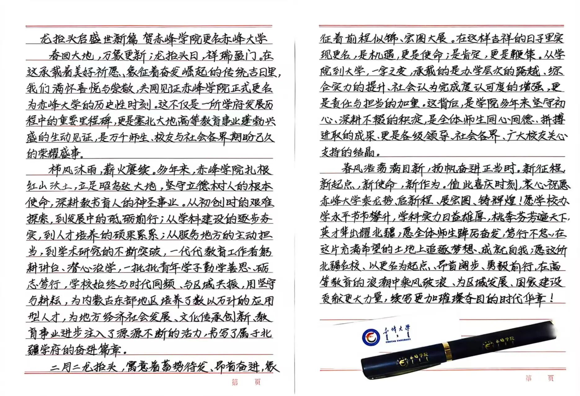 愿伴学府同奋进,芳华共铸赤城荣。