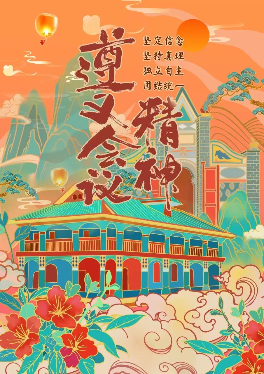 遵义会议旧址象征着中国共产党在历史关键时刻的自我纠错与伟大转折,是中国革命走向成熟的重要标志。它承载着先辈们坚定的理想信念、卓越的政治智慧和勇于担当的精神品质,犹如一座不朽的历史丰碑,矗立在岁月长河之中。杜鹃花象征着革命精神热烈绽放,它以绚烂且坚韧的姿态,展现出革命精神的不屈与顽强。红日代表着希望与力量,其散发出的光芒,驱散了迷雾,正如遵义会议为当时处于迷茫困境中的党和红军指明方向,为中国革命指明方向。祥云元素萦绕,承载着对革命先辈的敬仰与缅怀。遵义会议旧址提醒我们,革命精神必将代代传承、永不磨灭,遵义会议的光芒会永远为我们照亮前路,激励后人砥砺奋进,在新时代的浪潮中续写辉煌篇章,共铸伟大中国梦。