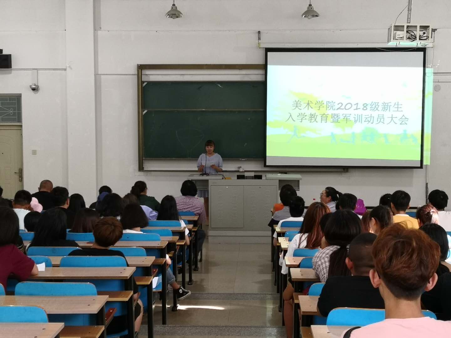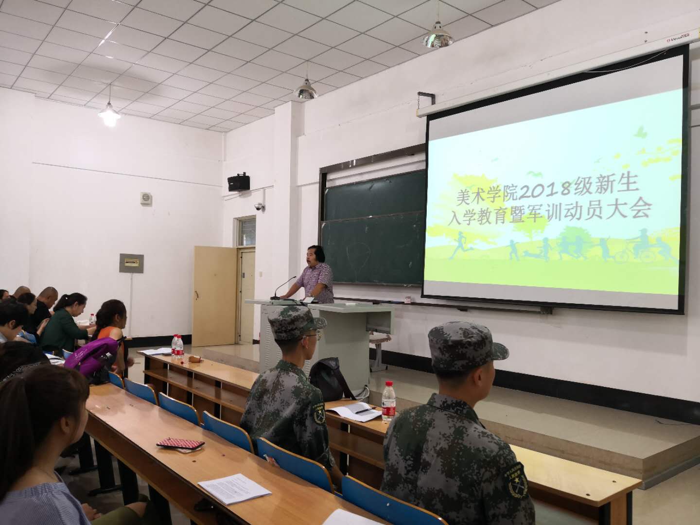 为了使2018级新生尽快适应大学生活,尽快融入新的集体,8月19日下午,美术学院在崇楼101教室召开2018级新生入学教育暨军训动员大会。学院领导班子成员、学工办及团总支负责人、部分班导师、老生代表及2018级新生辅导员、2018级新生150多人参加了会议。