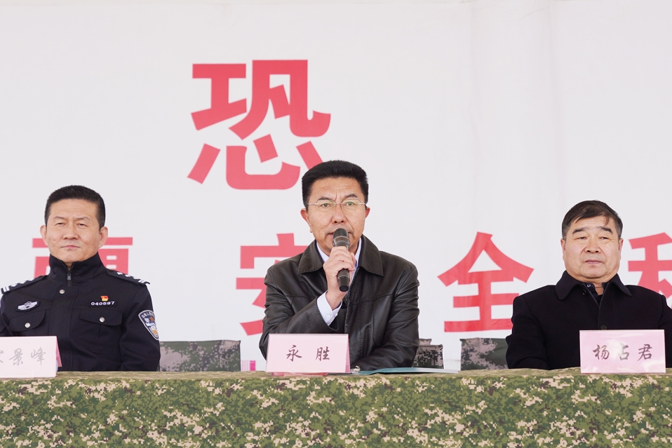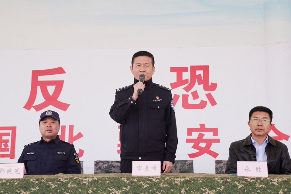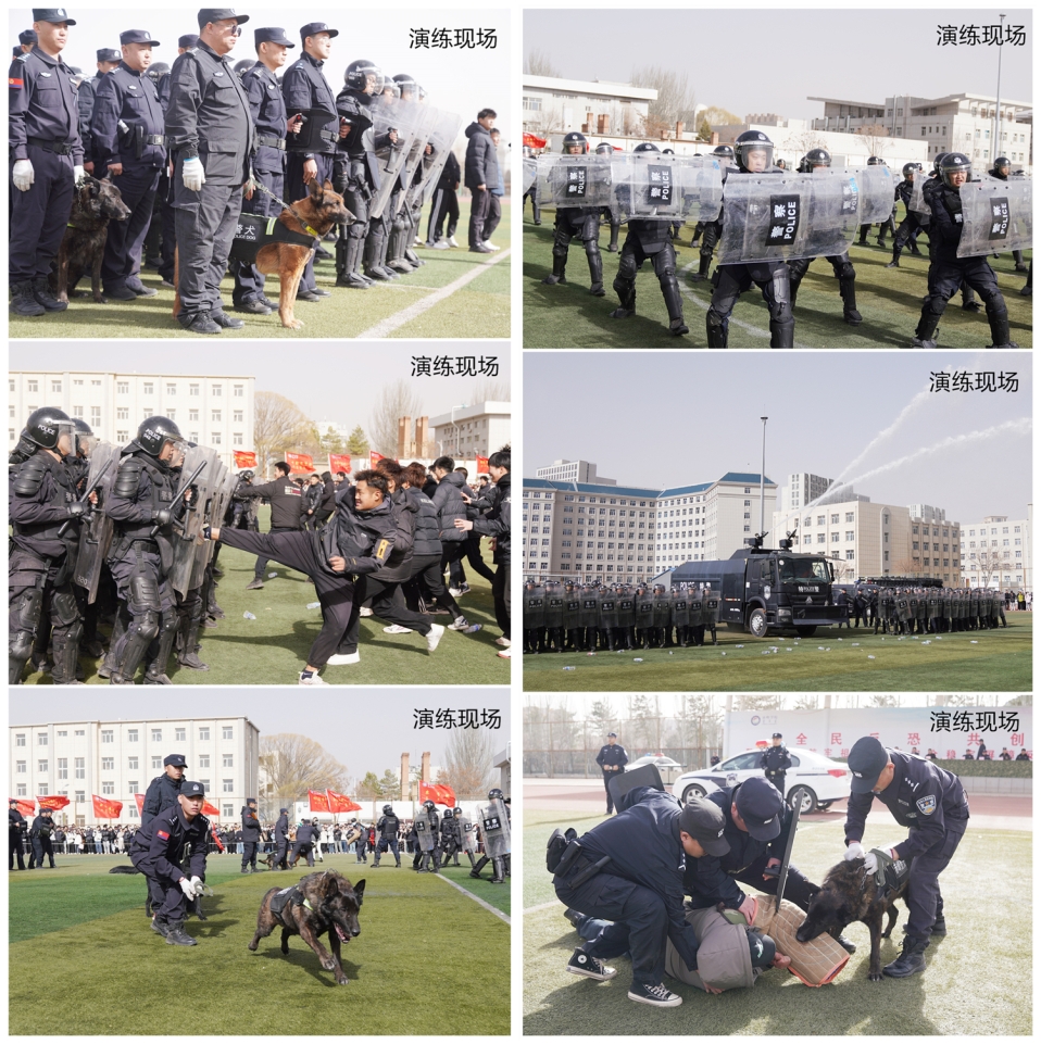 3月29日下午,我校与赤峰市公安局红山区公安分局在田径运动场联合开展了反恐实战应急演练。我校党委委员、副校长杨占君,党委委员、宣传部部长永胜,红山区人民政府副区长、红山分局局长林玉华,赤峰市公安局反恐怖和特巡警支队支队长姜涛、副支队长郑晓光,红山分局副局长宋景峰,我校相关职能部门负责人、各二级学院党政负责同志、辅导员和学生代表及物业公司工作人员等在现场观摩演练。