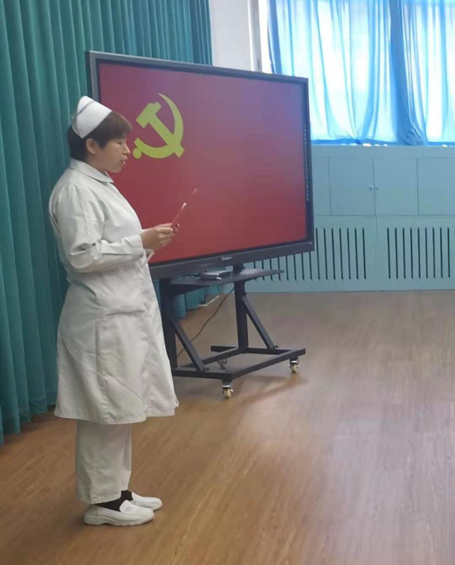 入党宣誓仪式在庄严的《国际歌》中拉开序幕,此次会议邀请到第二附属医院援鄂医疗队护士长程艳艳发言,她讲道,当国家遇到危难的时刻,党员的初心使命不是一句口号,而是时刻冲锋在前的行动。