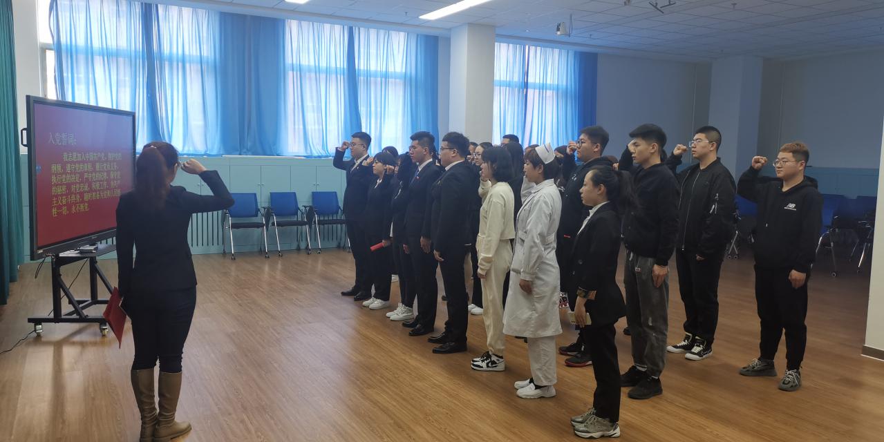 2021年3月18日,护理学院在新校区召开新党员入党宣誓仪式,护理学院学生党支部2020年发展的22名预备党员参加宣誓,支部全体老党员重温入党誓词,会议由我院学生党支部书记吴向楠主持。