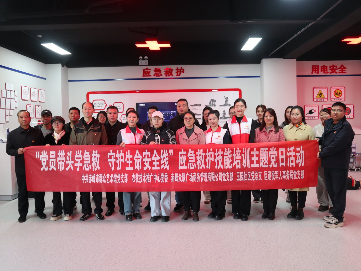 为积极响应国家健康中国建设的号召,进一步提升社会组织应对突发事件的急救能力,增强党员自救互救能力,有效保障社会生命安全,11月6日下午,护理学院教工党支部组织多个党支部来我校健康管理与应急救护中心联合开展共建应急救护主题党日活动,并提供应急救护培训志愿服务。全宁街道玉园社区居委会、赤峰市群众艺术馆、赤峰市农牧技术推广中心、松山区退役军人事务局、赤峰众联广场商务管理有限公司等多家单位30余名党员同志参加此次活动。