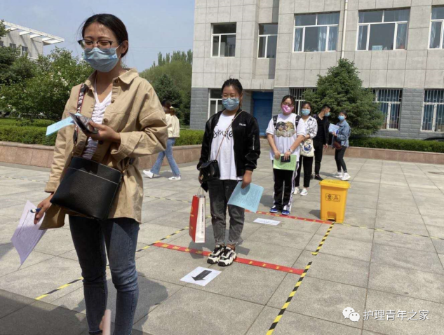 在交警、保安的协力配合下,学校西门口秩序井然。学生全程佩戴口罩,保持1.5米以上安全距离依次排队等候检测。