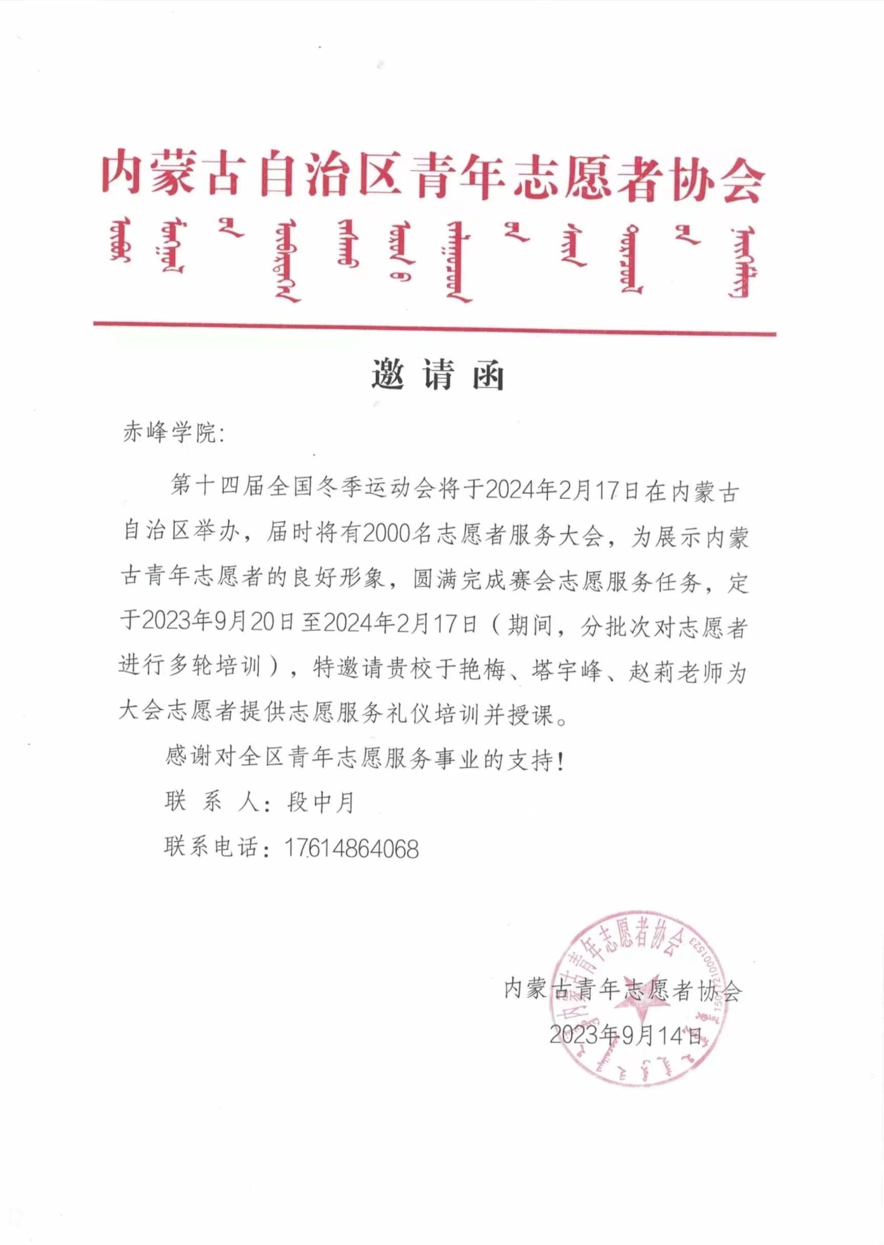 近日,我校教师于艳梅、赵莉、塔宇峰接到自治区团委邀请,为即将举办的第十四届全国冬季运动会志愿者进行礼仪培训。这是对我校教师专业能力的认可,也是对我校服务社会的有力支持。