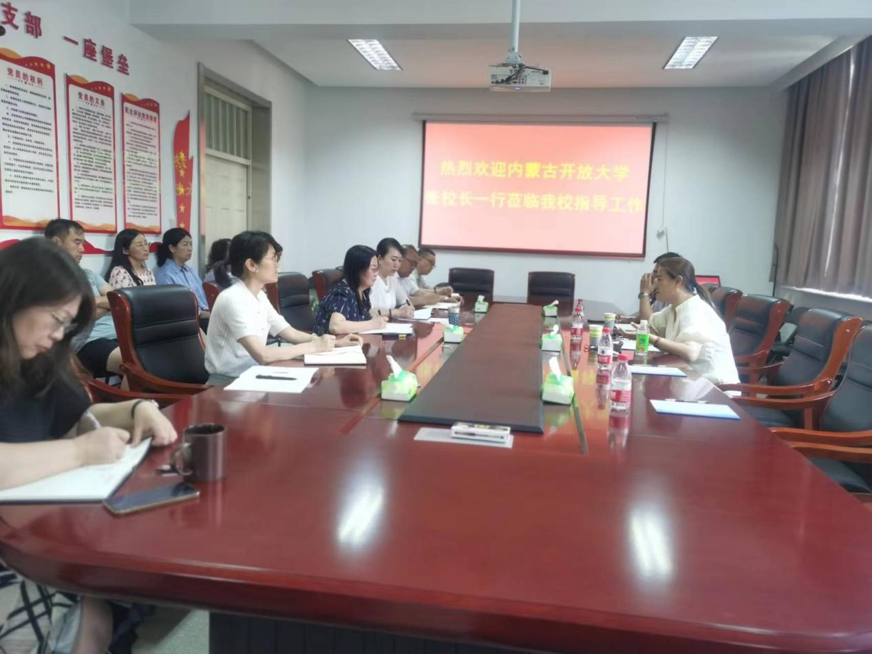 7月10日下午,内蒙古开放大学副校长张建茹一行到继续教育学院就《开放大学综合改革方案》推进情况、开放教育资源建设、教师合作交流培训等工作进行调研,继续教育学院领导班子、科级干部及开放教育科相关人员陪同调研并座谈。