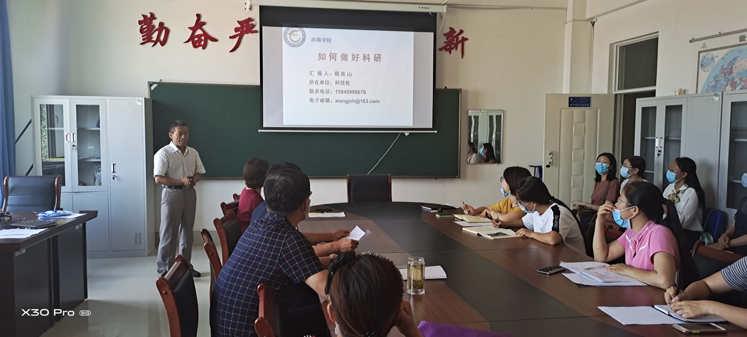 培训会上,曾2次主持国家自然科学基金项目的科技处项目科科长相吉山博士结合自己科研工作的经历,从项目申报、具体研究和成果总结三个方面为老师们做了题为《如何做好科研》的主题报告。在上一年度赤峰学院教育教学研究项目结题评审中,学前与特殊教育学院于海杰老师主持的项目《新时期教师教育专业学生核心素养研究 》被评为唯一“优秀”等级,培训会上于老师现身说法与大家分享了自己开展教育教学课题研究的成功经验。