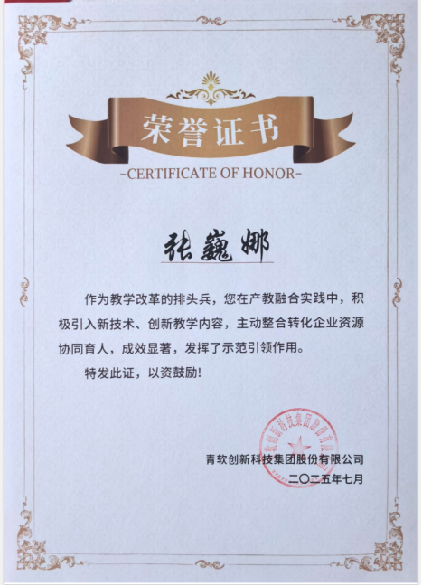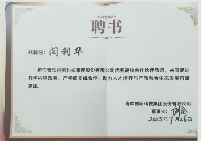 在大会分论坛“智能时代下产教融合创新实践专题研讨会”上,闫利华、张巍娜两位教师凭借在产教融合领域的积极实践与突出表现,荣获优秀教师称号,并被正式聘任为青软优秀高校合作伙伴教师。