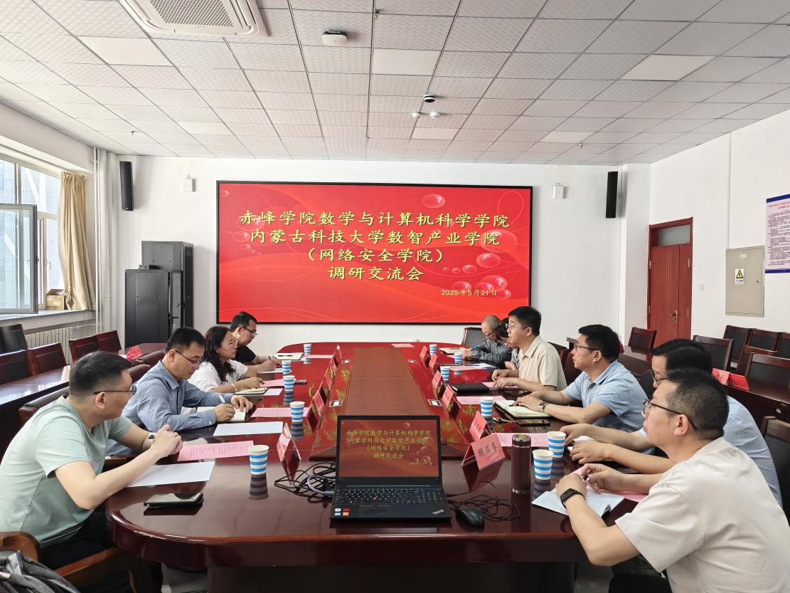 21日上午,数学与计算机科学学院院长敖恩、副院长张亚鹏、信息与计算科学教研室主任唐琳、数据科学与大数据教研室主任王鹏、教研室副主任李禹霏一行5人赴内蒙古科技大学数智产业学院(网络安全学院)进行调研学习。数智产业学院(网络安全学院)书记王静宇、院长张超、张晓琳教授、计算机科学与技术系主任黄显武、教学办主任丁雨、顾瑞春副教授参加会议,会议由张超院长主持。双方在介绍本院发展现状后,在本科专业设置和调整、校企联合培养、工程教育专业认证、硕士点博士点建设、科研组织等方面进行了深入的交流。王静宇书记指出,当前学校正在根据社会趋势发展动态调整专业设置,产业学院有助于提高学生的动手能力。硕士点建设、博士点建设需要体现地区和学校的特色,鼓励和加强教师参加学术会议和企业交流有助于更好推动科研水平发展。张晓琳教授在本科专业课程设置和师资队伍培养方面分享了宝贵经验。黄显武主任介绍了校企联合培养、夏令营等特色培养模式,并在科研平台建设方面分享建设方案。丁雨主任就校企合作、实训等方面分享了宝贵经