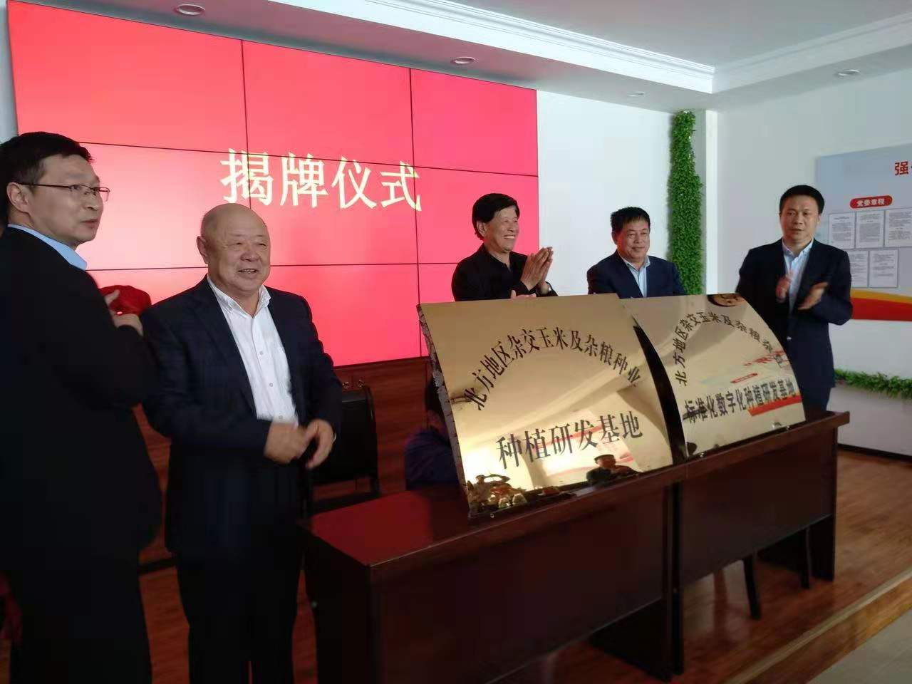交流会后举行了内蒙古北斗星科技有限公司与湖南英盟科技有限公司合作签约仪式、北方地区杂交玉米及杂粮杂豆标准化数字化种植基地、北方地区杂交玉米及杂粮种业种植研发基地揭牌仪式。