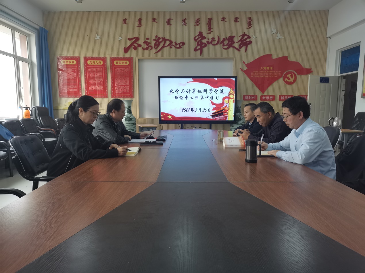20213月26日,数学与计算机科学学院理论学习中心组在逸夫理工楼313会议召开了集中学习会议,会议由党总支书记王增主持,理论学习中心组全体成员参加了会议。