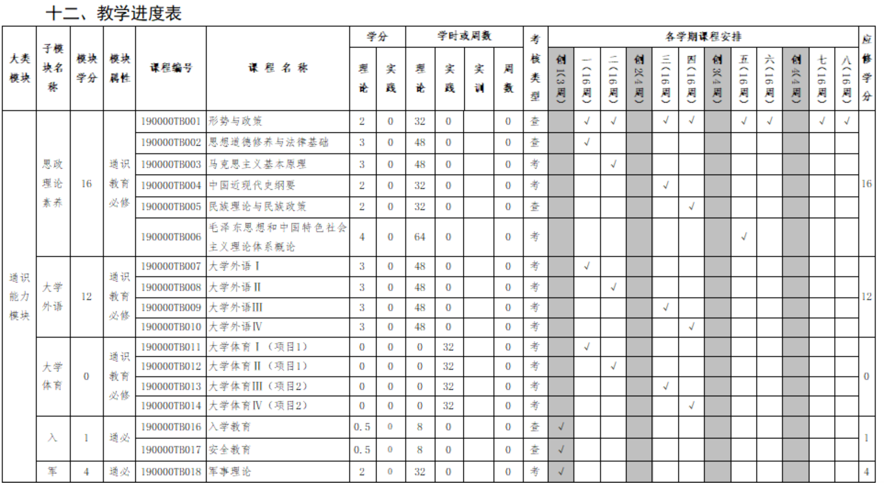 一、模块化课程结构体系及学分比例