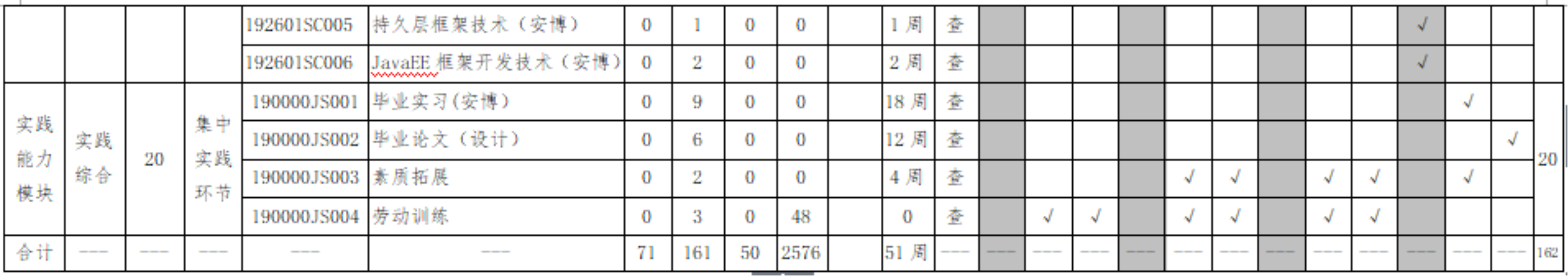 毕业要求与课程、实践教学活动关联矩阵