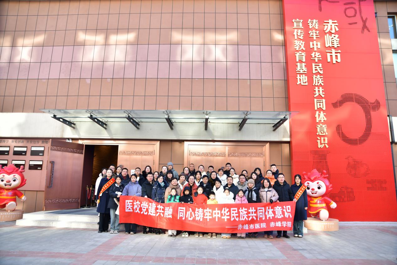 为深入贯彻落实习近平总书记关于加强和改进民族工作的重要思想,以党建为引领搭建医校协同育人平台,2026年1月25日(星期日)上午9时,赤峰市医院内三支部、内二支部、财务支部及相关科室共53名成员,准时赴赤峰学院铸牢中华民族共同体意识宣传教育基地,开展“赓续红色血脉·凝聚团结共识”主题参观学习活动。