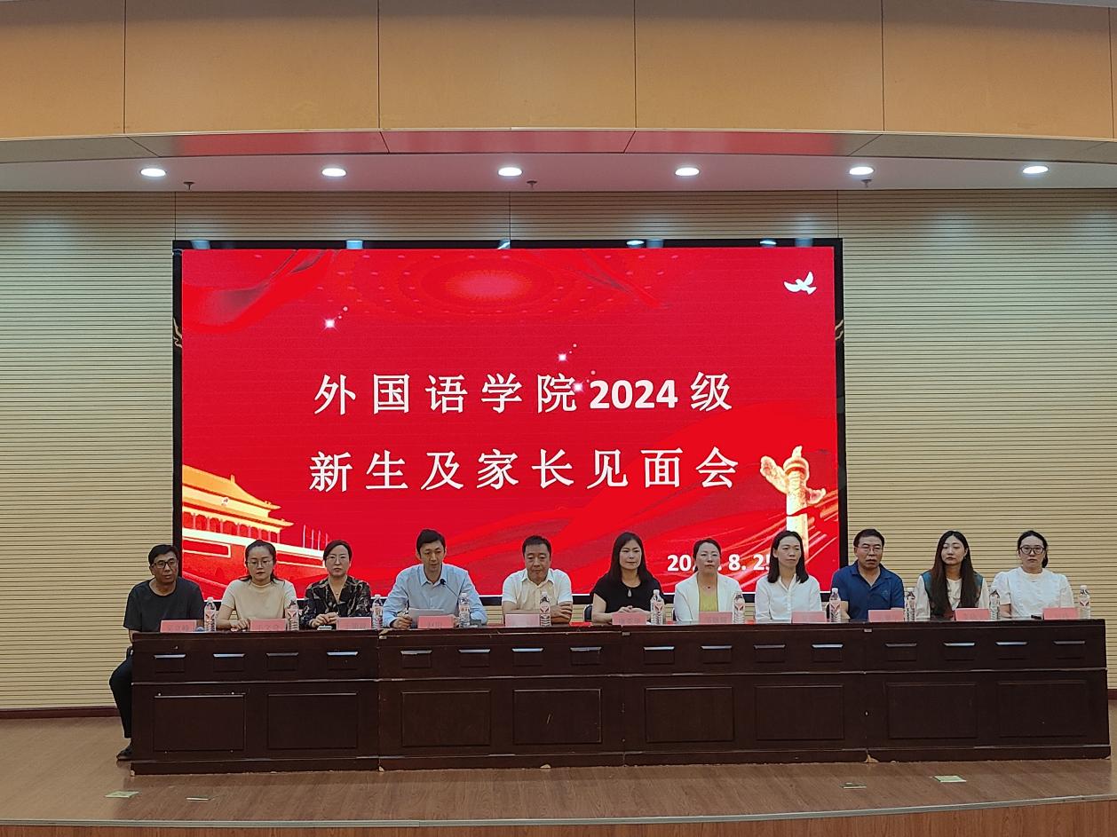 乘风破浪赴山海,青春逐梦启新程。为迎接2024级新生,使新生和家长更全面细致地了解我院办学理念和开学相关工作,构建家校同心协力的共育平台,8月25日,赤峰学院外国语学院2024级新生及家长见面会在我校学术报告厅顺利举行。外国语学院党总支书记关立峰、院长康英华、党总支副书记赵阳、办公室主任于明波、教务办主任邹德媛、团学办副主任毛文奇、实验教辅中心负责人吴立峰、研究生负责人刘祎、教务办秘书及辅导员李晓宇、英语师范教育教研室主任夏莹、日语教研室主任毛景宇、全体学生会成员、2024级新生及部分家长参加会议。会议由赵阳书记主持。