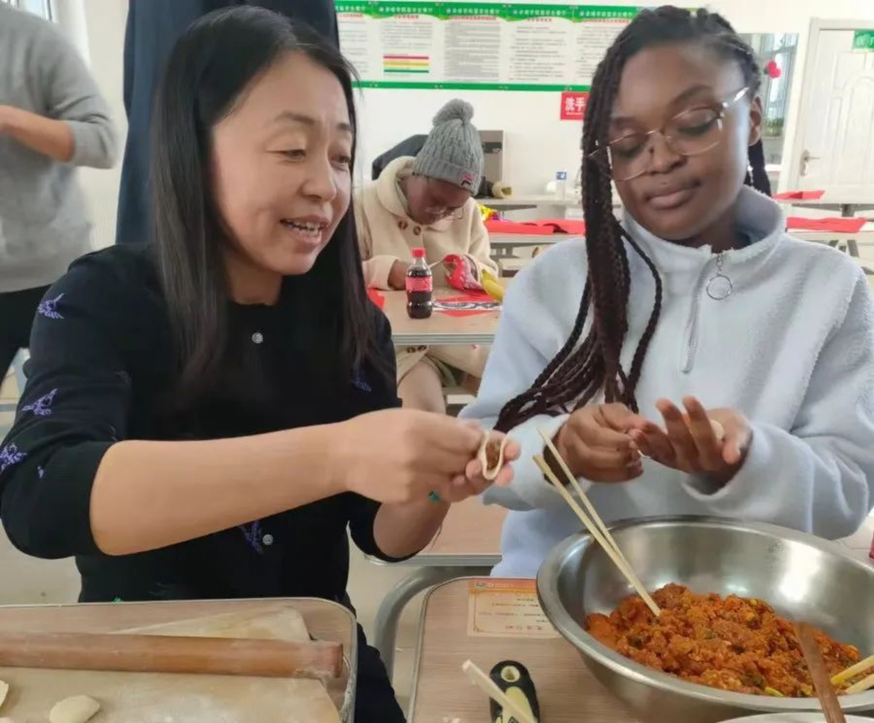 当天下午,国际教育学院师生欢聚一堂,共同写“福”字,写春联,折幸运星,剪窗花,包饺子,欢声笑语中的留学生食堂充满了浓浓的年味儿和四海亲情。