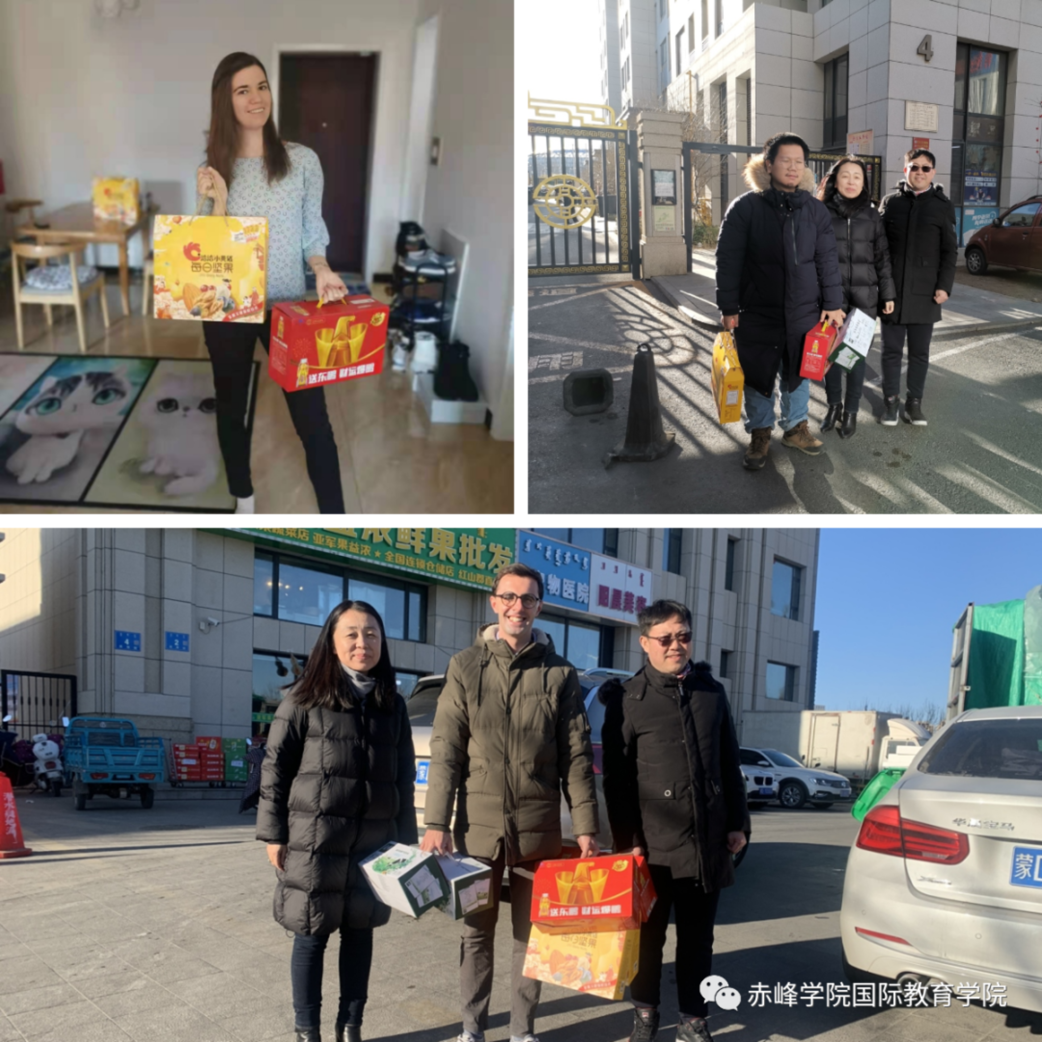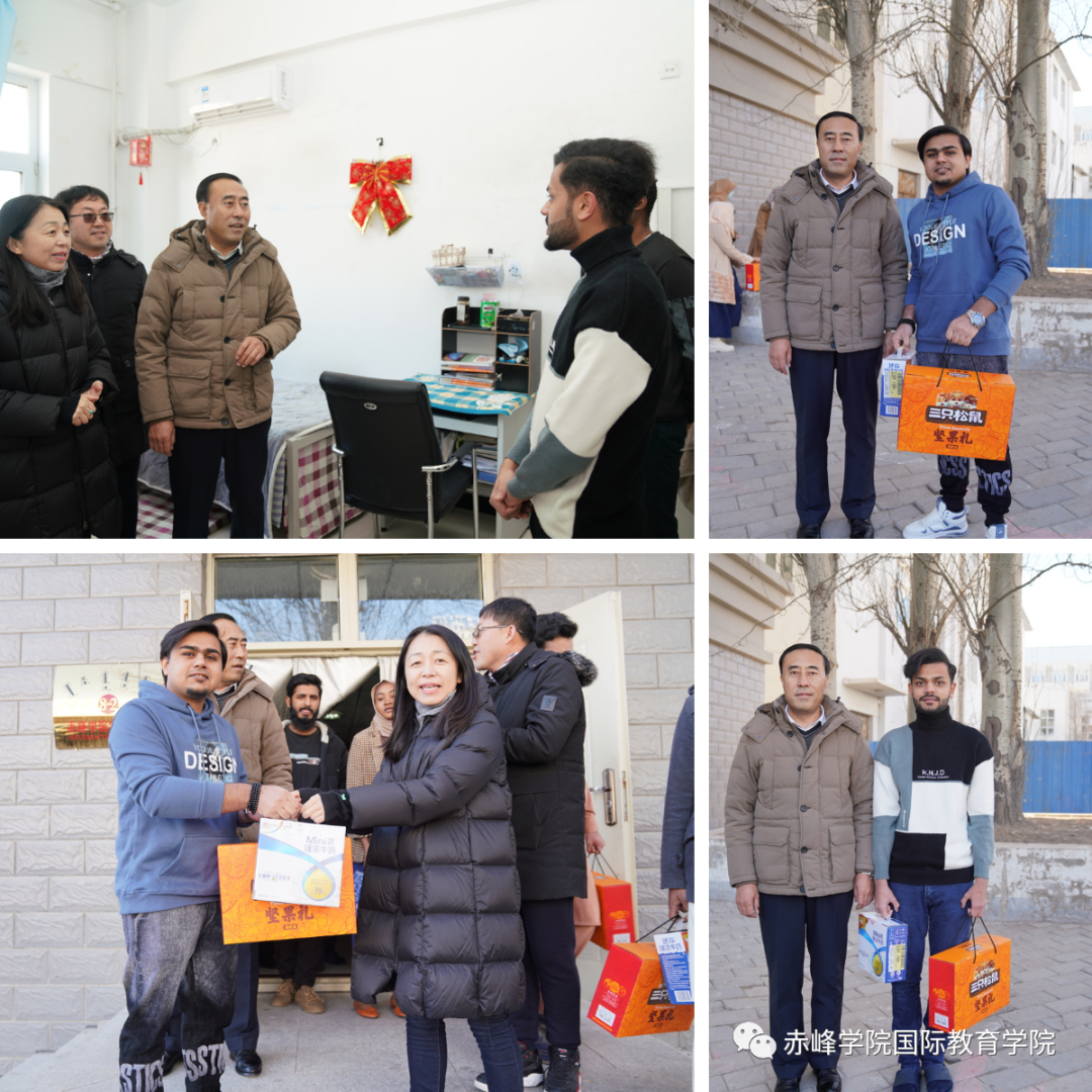 为更好地了解寒假留校国际学生的学习生活状况,1月27日上午,校党委委员、副校长徐振军在国际教育学院领导班子的陪同下到留学生公寓走访、慰问,与在校留学生亲切交谈,让他们说说心事,聊聊感受,并发放了新春慰问大礼包。最后,徐校长希望同学们在假期安排好学习和生活,遵守学校的防疫要求,度过一个安全、祥和的寒假生活。随后,国际教育学院领导班子去往外籍教师公寓进行了慰问。