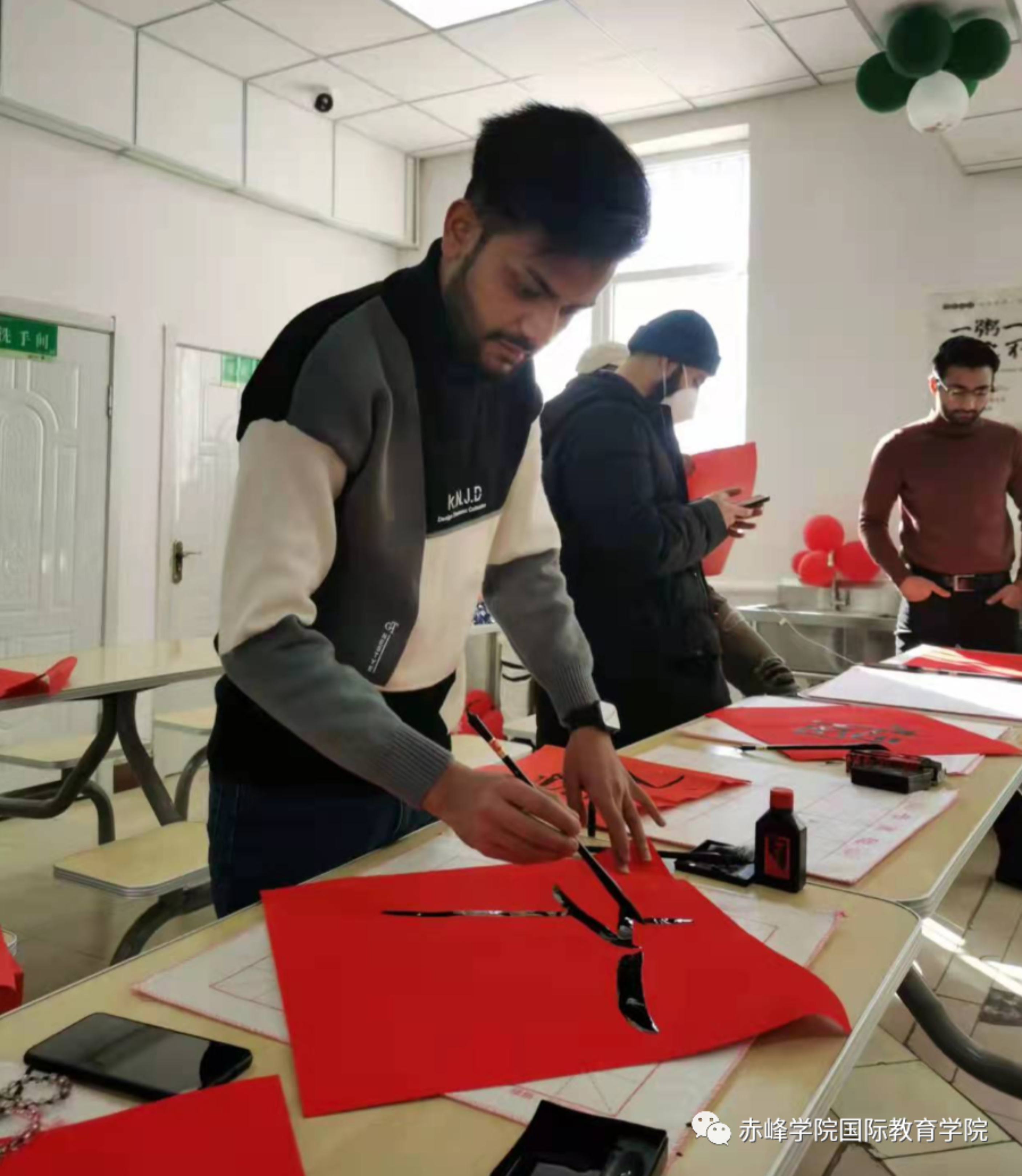 为了让因受疫情影响寒假不能回国的外籍师生度过一个充实难忘的春节,国际教育学院于2022年1月27日-2月15日举办了春节系列文化体验活动。此次活动不但使在校留学生体会到了浓浓的中国年味,弘扬了中国传统文化,也增添了赤院国际学子的归属感,给这个寒冷的冬天增加了一丝的温暖。