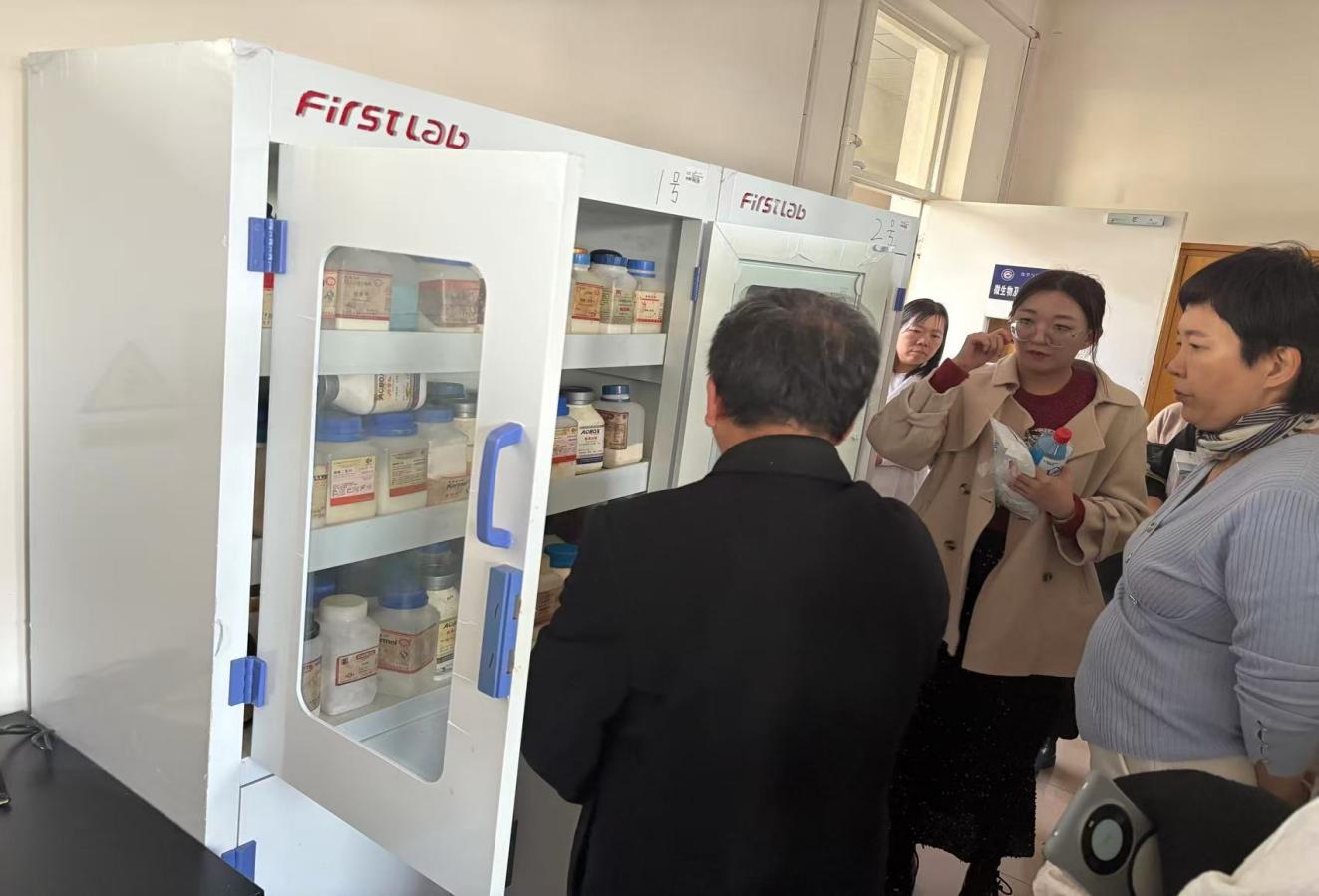 孙志城教授指导化学与生命科学学院药品分类存储。