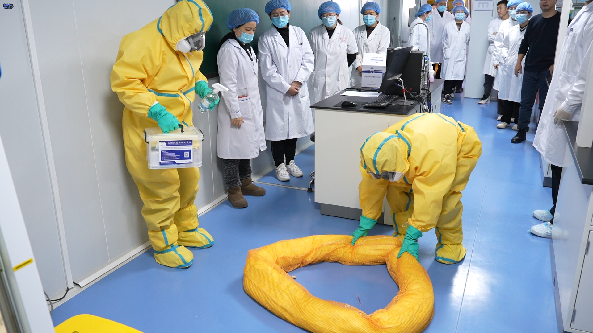 本次演练特邀赤峰市消防大队专家现场指导教学。专家团队聚焦实验室高频安全风险,围绕酒精灯规范使用要点及失火应急处置流程开展实操演示;同时系统讲解各类灭火器的适用场景与标准操作步骤,并结合实验室空间布局特点,针对性普及火灾逃生的核心要点与注意事项。随后,现场开展实验室生物试剂(大肠杆菌菌液)泄漏模拟应急处置演练,全面还原泄漏后的预警上报、个人防护、现场清理、废料处置等全流程规范操作。