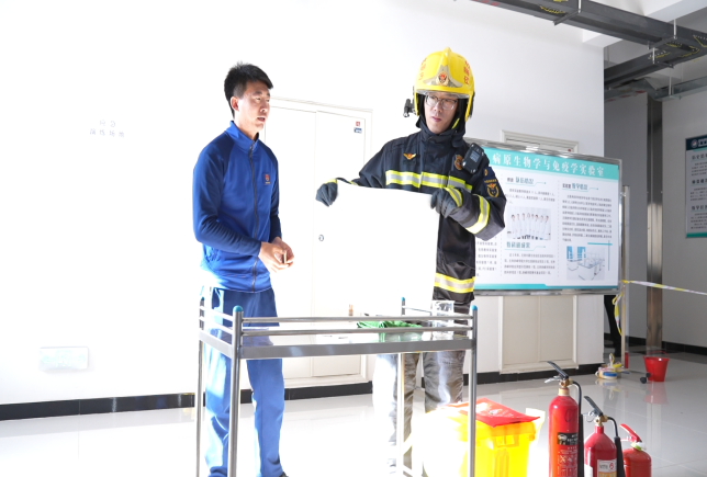 11月28日上午,资产与实验室管理处联合校园安全管理处共同举办实验室安全应急演练,基础医学院、化学与生命科学学院、农学院等二级学院的师生代表全程参与演练。