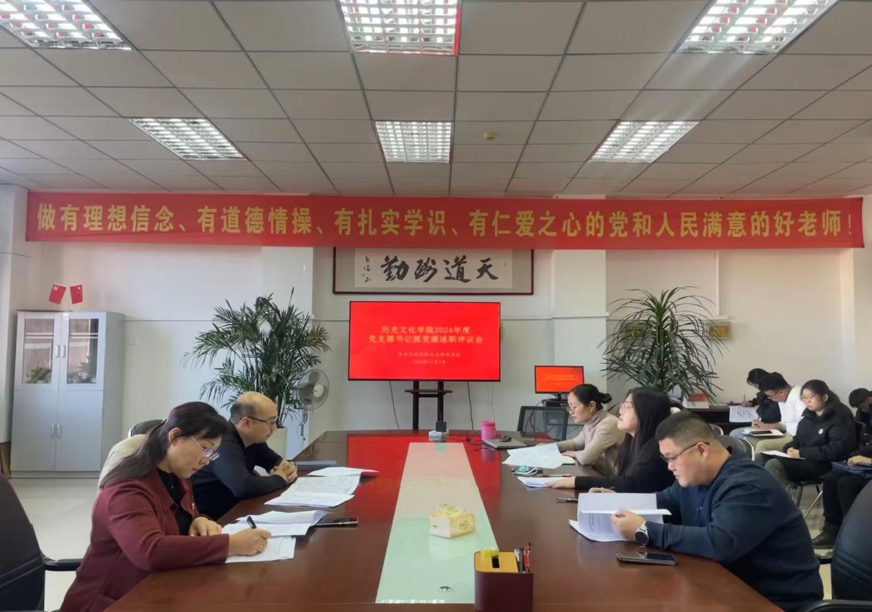 为深入贯彻落实新时代党的建设总要求,进一步加强历史文化学院党组织建设,历史文化学院2024年11月5日下午于崇仁楼429室召开了党支部书记抓党建述职评议会。党委领导出席、各党支部书记与部分党员代表参与本次大会,会议中学生支部书记那钦、教工一支部书记于晓娟和教工二支部书记谢胜男依次开展述职汇报。