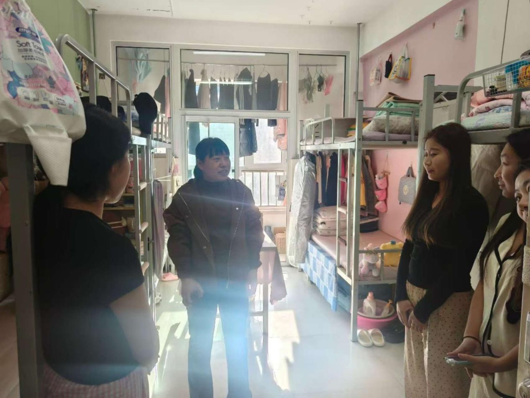 每至一间宿舍,李月新院长细致检查宿舍卫生及设施,对物品规整、环境整洁的宿舍予以肯定,着重强调宿舍环境建设对学生自律意识、责任感培养的重要性,要求学生持续维护优良居住环境,将良好习惯内化为生活准则。