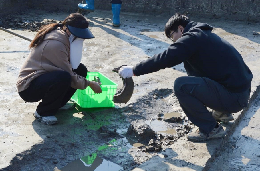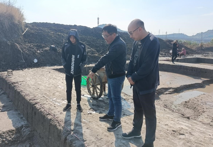 在浙江省绍兴市越城区南山村南山遗址,浙江省考古研究所专业教师和历史文化学院马贞老师带领学生对东周时期的遗址进行考古发掘。本次发掘的东周遗址面积约为12万平方米,同学们两人一组,对规格为10mx10m探方进行发掘,亲手发掘出了包括陶片、青铜器等在内的多件文物,其中,陶片多为印纹硬陶,纹饰主要有米字纹、席纹、方格纹、粗麻布纹、细麻布纹等;青铜器有青铜刀、青铜削。