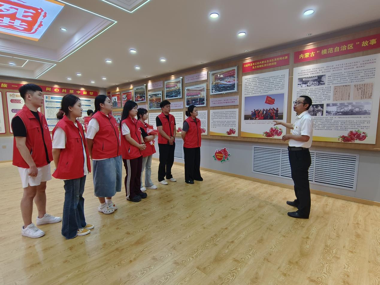 接着师生来到林西县铸牢中华民族共同体意识主题教育展厅,在讲解员的引领下,实践团实地参观了五个展区,通过聆听讲解、现场观摩等方式,进一步重温了党的光辉历史,学习了党中央和习近平总书记对民族工作的重要指示和殷殷嘱托,增强了同学们“感党恩、听党话、跟党走”的坚定信心。