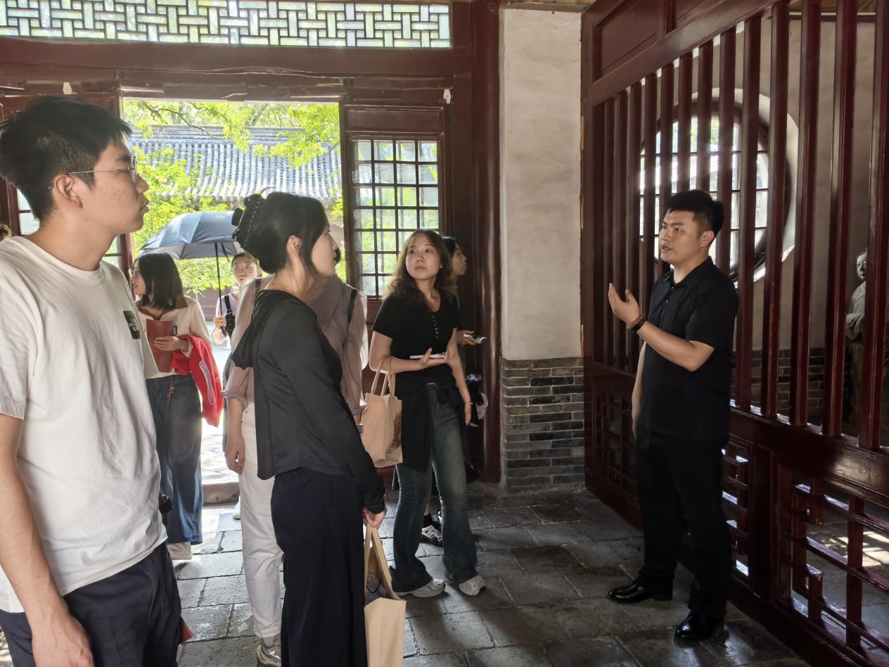 历史文化学院师生对晋祠博物馆进行研学考察时遇到学院2021级文物与博物馆专业硕士毕业生梁卓,他全程陪同并进行了深入浅出的讲解和互动,使师生们进一步了解晋祠博物馆所承载的厚重历史。