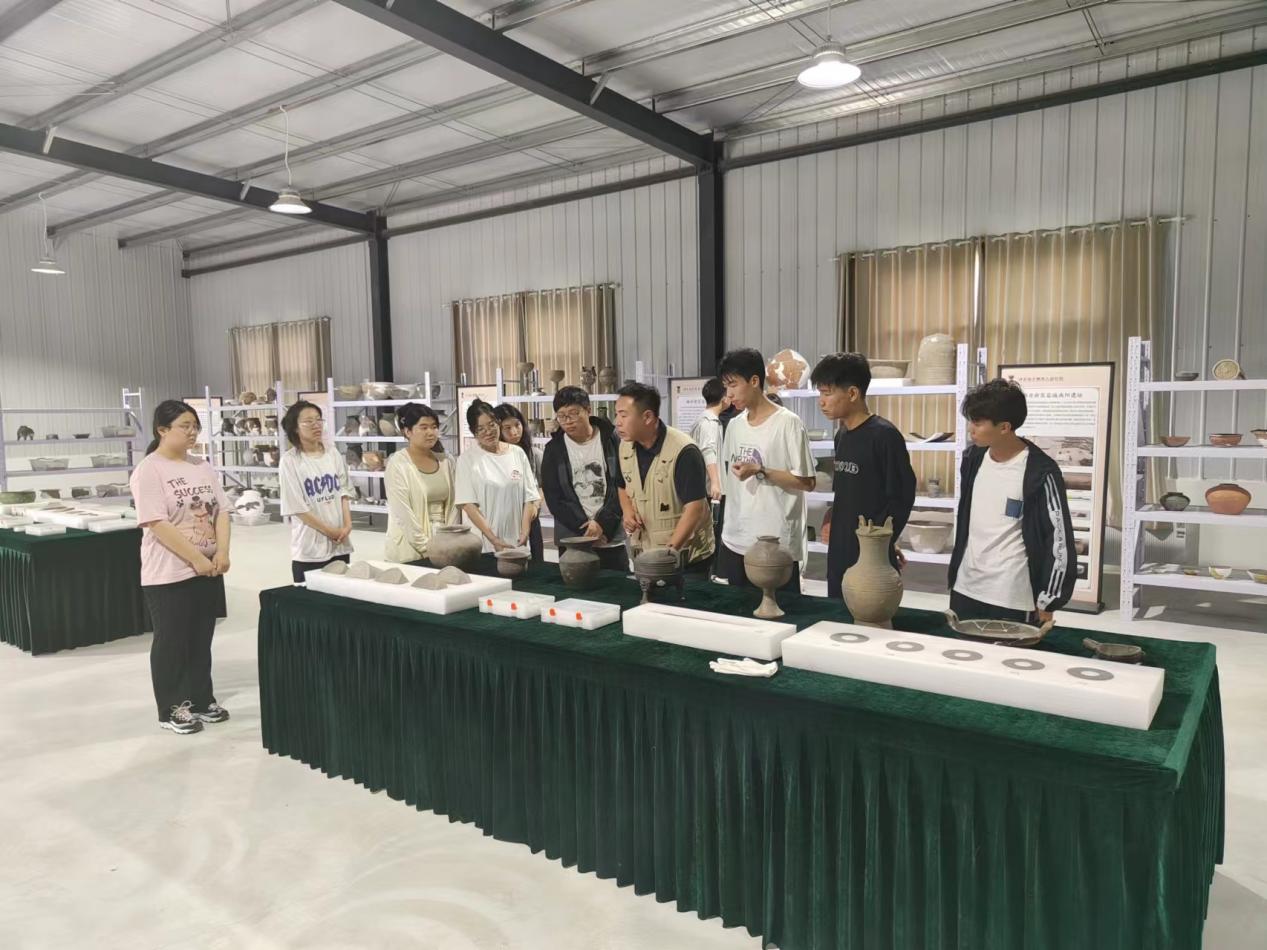 在白满达、李明华、那钦老师的带领下,到达河北省文物考古研究院雄安新区文物保护与考古工作站后,河北省文物考古研究院南阳遗址考古发掘项目负责人雷建红研究员为带队老师及同学们介绍了南阳遗址相关情况,并强调在考古工地上的注意事项,特别强调了发掘期间的安全问题与纪律问题。随后,工作人员带领学生们参观了文物库房并听取了专业人员关于南阳遗址以及雄安新区文化遗产保护与利用的经验分享,以便同学们了解相关知识,加深对考古学理论与方法的理解。