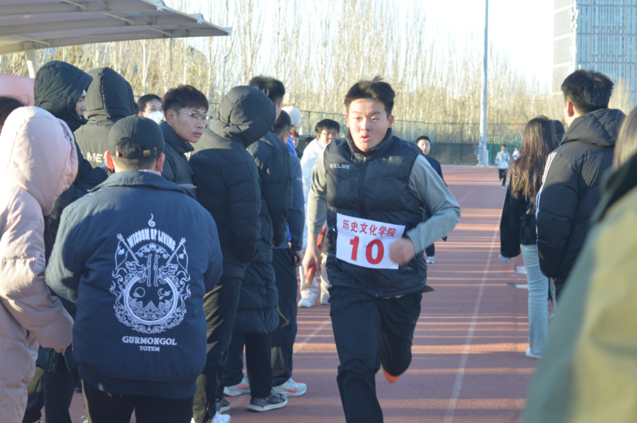 女子组比赛结束后,历史文化学院的男生们也踏上了属于他们的竞技之路。男生们的表现堪称亮眼,尽显热血与担当,为赛事添上浓墨重彩的一笔。发令枪响,打头阵的男生们仿若脱缰骏马,爆发力惊人,瞬间冲在前列;交接时刻,负责接棒的男生早早做好起跑姿势,身体前倾、掌心后伸,全神贯注紧盯来棒,一接到便如猎豹般疾驰而去;冲刺阶段,男生们更是咬紧牙关、青筋暴起,汗水顺着脸颊肆意滚落,浸湿衣衫。在历史文化学院男生们的共同拼搏之下,最终取得了第五名的佳绩。