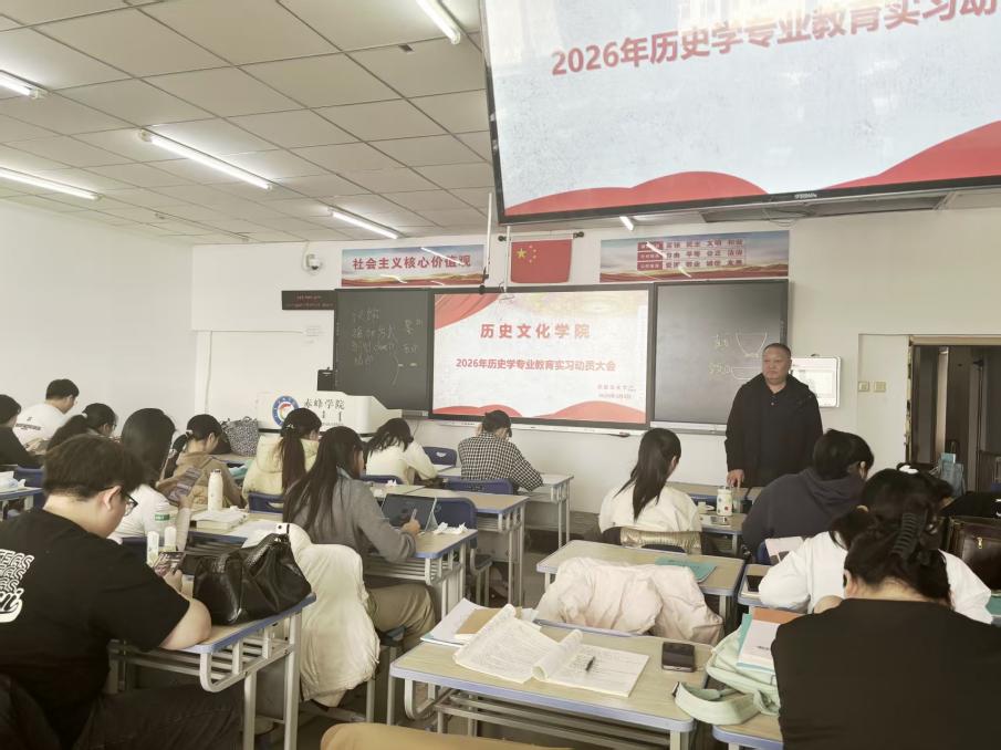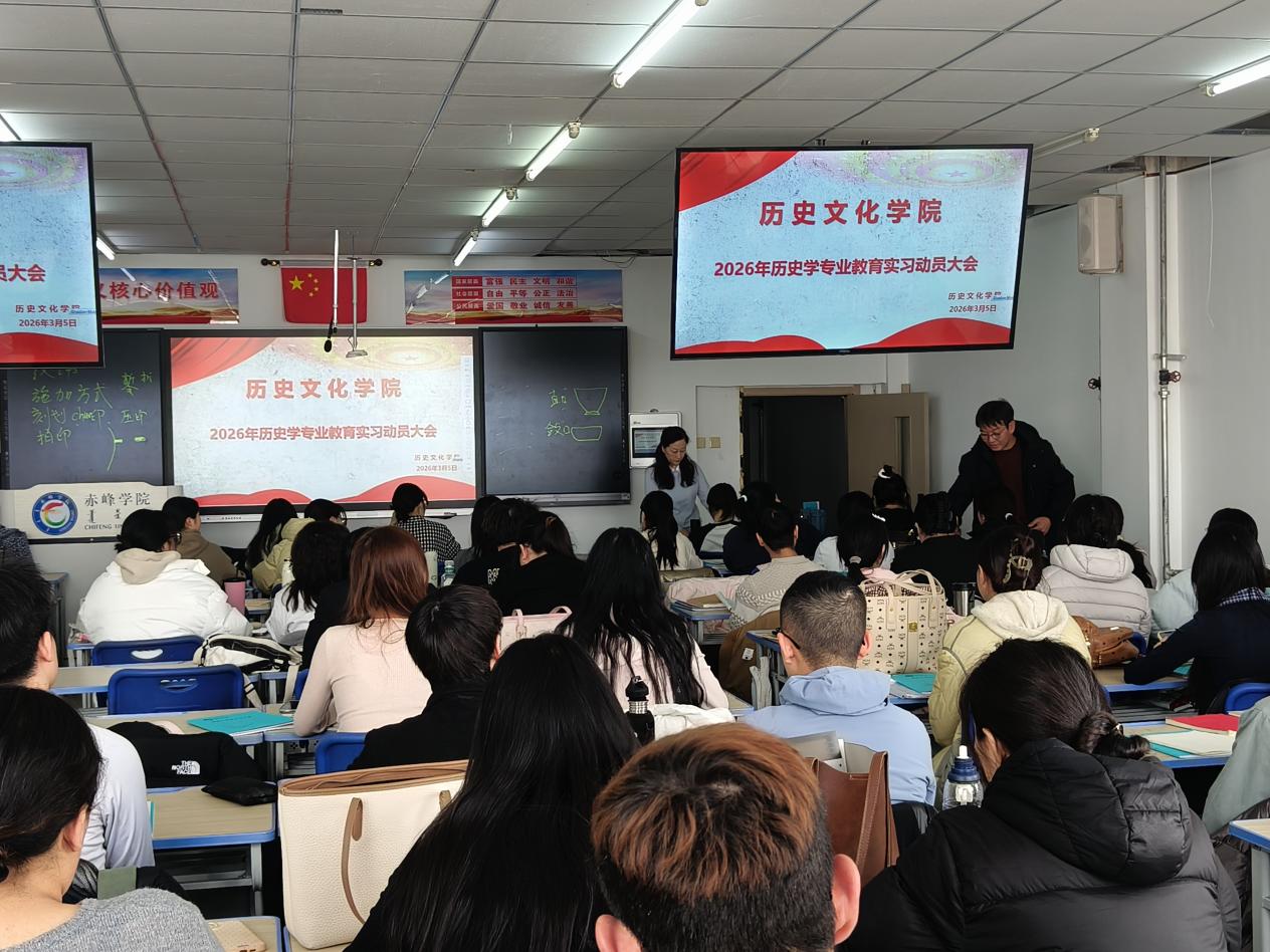 为扎实推进历史学专业人才培养,明确教育实习目标与要求,3月5日,赤峰学院历史文化学院在崇学楼607召开2026年历史学专业教育实习动员大会。历史文化学院党总支副书记双喜出席本次会议并就实习作出重要指示,带队教师高亮、乌力吉图就实习重要事项进行讲解,全体2023级历史学专业学生参加本次会议。