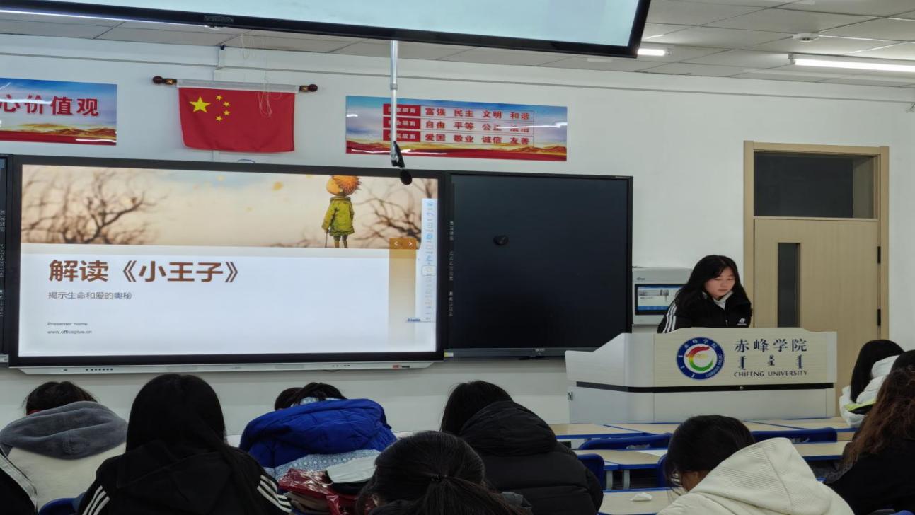 当汪晓艳同学分享安托万·德·圣-埃克苏佩里的《小王子》时,温馨与童真弥漫开来。《小王子》如同一颗璀璨的星,照亮了我们内心深处被世俗尘埃所遮蔽的童真天地,提醒我们在成长的道路上,莫要遗失了那份对世界的好奇与对情感的敏锐感知。