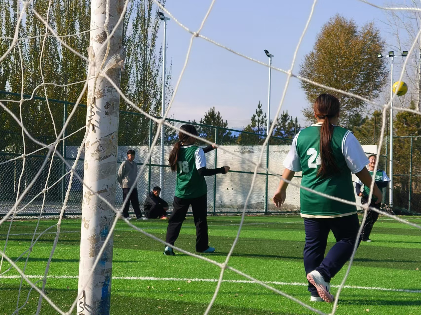 女足比赛首先开始。双方队员依次入场,教练们则抓住时间对队员们进行最后的战术布置与规划。女足虽在小组赛阶段多次遭遇强敌,但她们面对困难毫不低头,迎难而上。以高昂的斗志和团结的精神在本次比赛中获得了第八名的好成绩。