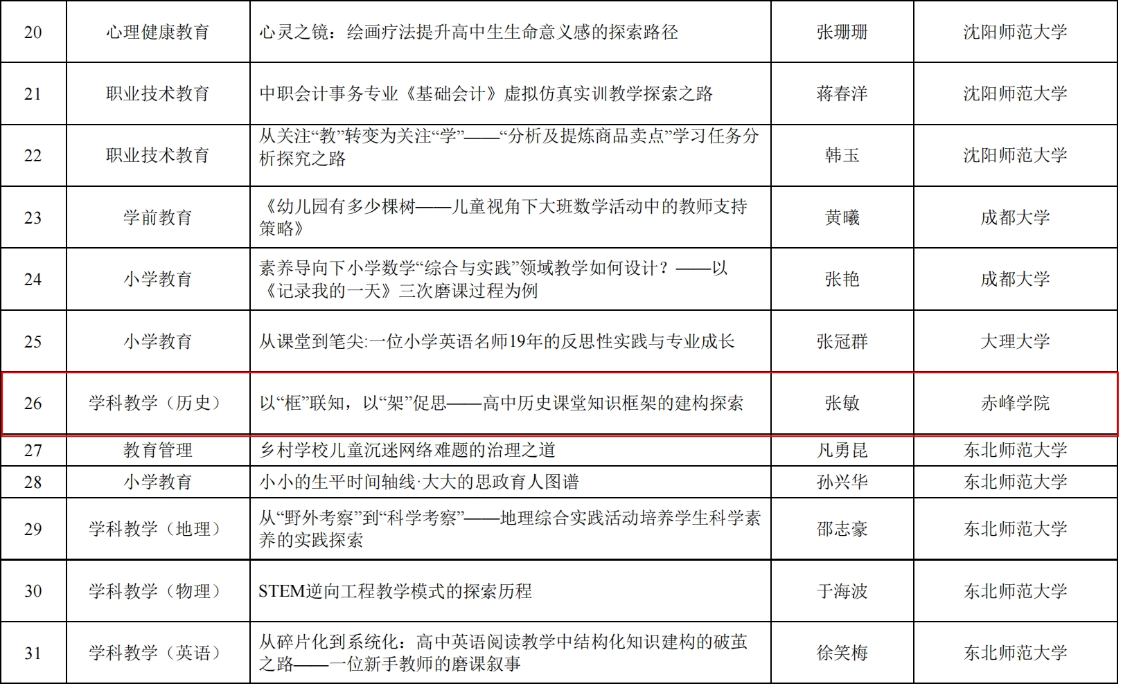 近日,第七届全国教育专业学位教学案例征集活动评审结果正式公布,我院张敏老师撰写的《以“框”联知,以“架”促思——高中历史课堂知识框架的建构探索》教学案例,成功入选中国专业学位案例库,成为我校此次唯一入选的案例。