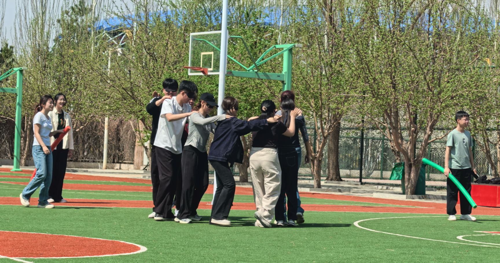 此次拓展活动精心设计多元项目:“听词做动作”以趣味指令激发反应活力;“松鼠搬家”在角色重组中考验应变与协作;“我是你的眼”用信任搭建心灵桥梁;“听歌识曲”借旋律唤醒热情与共鸣;“搭桥过河”凭策略与配合突破难关等等。各项目相辅相成,既有思维与肢体的碰撞,也有情感与默契的交融,全方位助力参与者释放压力、提升心理素质、凝聚团队合力。其中,“我是你的眼”同学们踊跃参与,兴致盎然。该游戏以蒙眼与引导的角色设定,构建起信任与协作的桥梁。一方在黑暗中卸下防备,将方向与安全托付同伴;一方凭借耐心与智慧,用言语指引、肢体辅助带领“同行者”跨越障碍。在未知与摸索中,不仅深化了彼此间的信赖,更让参与者切身体会到互助扶持的温暖力量,成为一场直击心灵的默契试炼与情感共鸣之旅。