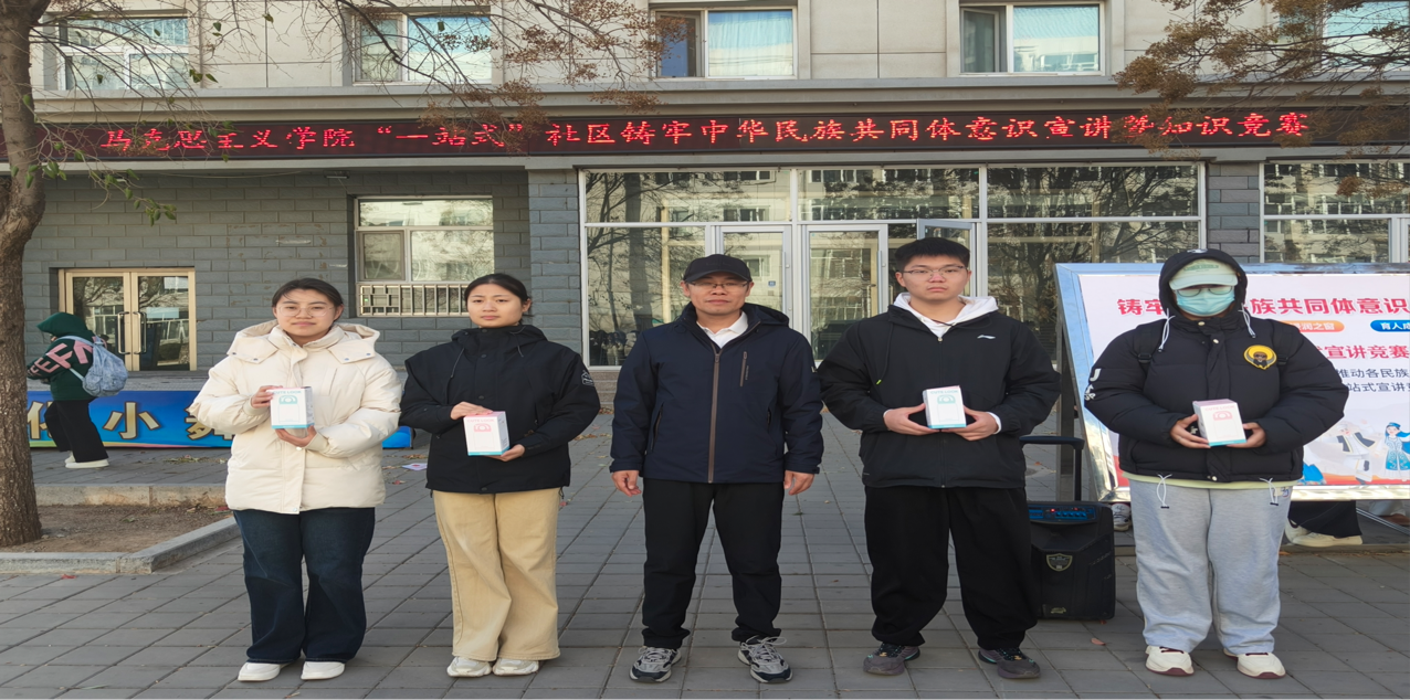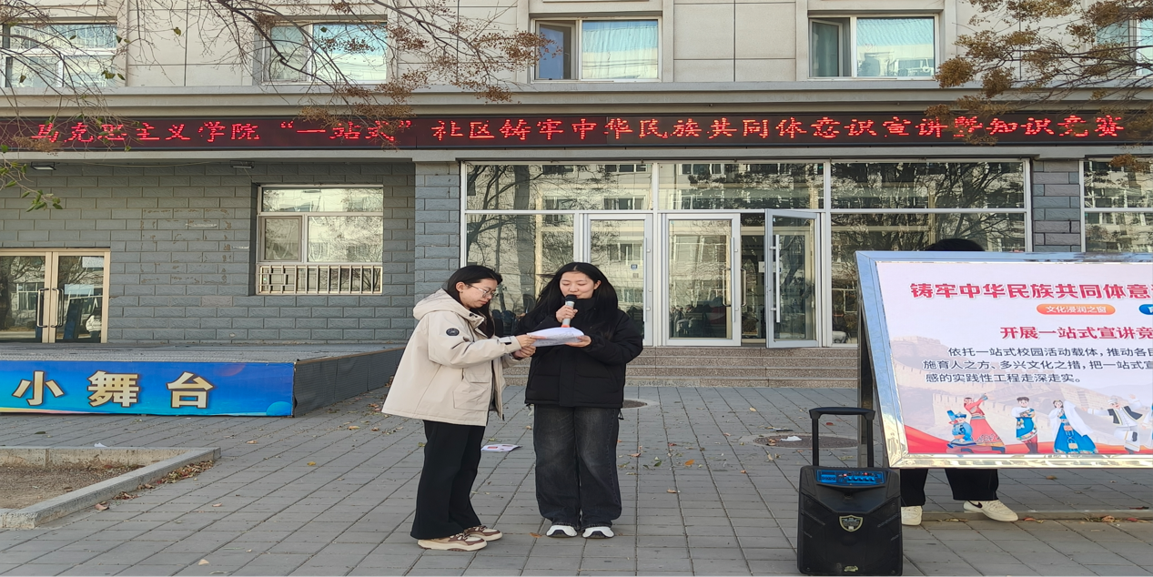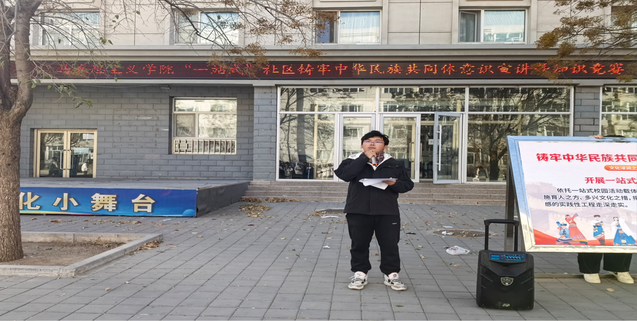 2025年11月12日中午12:30,在学校一站式学生社区门口,马克思主义学院、物理与智能制造工程学院联合举办了“知信行统一 共筑民族情——铸牢中华民族共同体意识宣讲暨知识竞赛”活动。马克思主义学院党总支副书记宁德安、团学办主任赵广伟出席活动,全体学生共同参与了这场思政大课。本次活动由团总支学生会副主席田印同学主持。