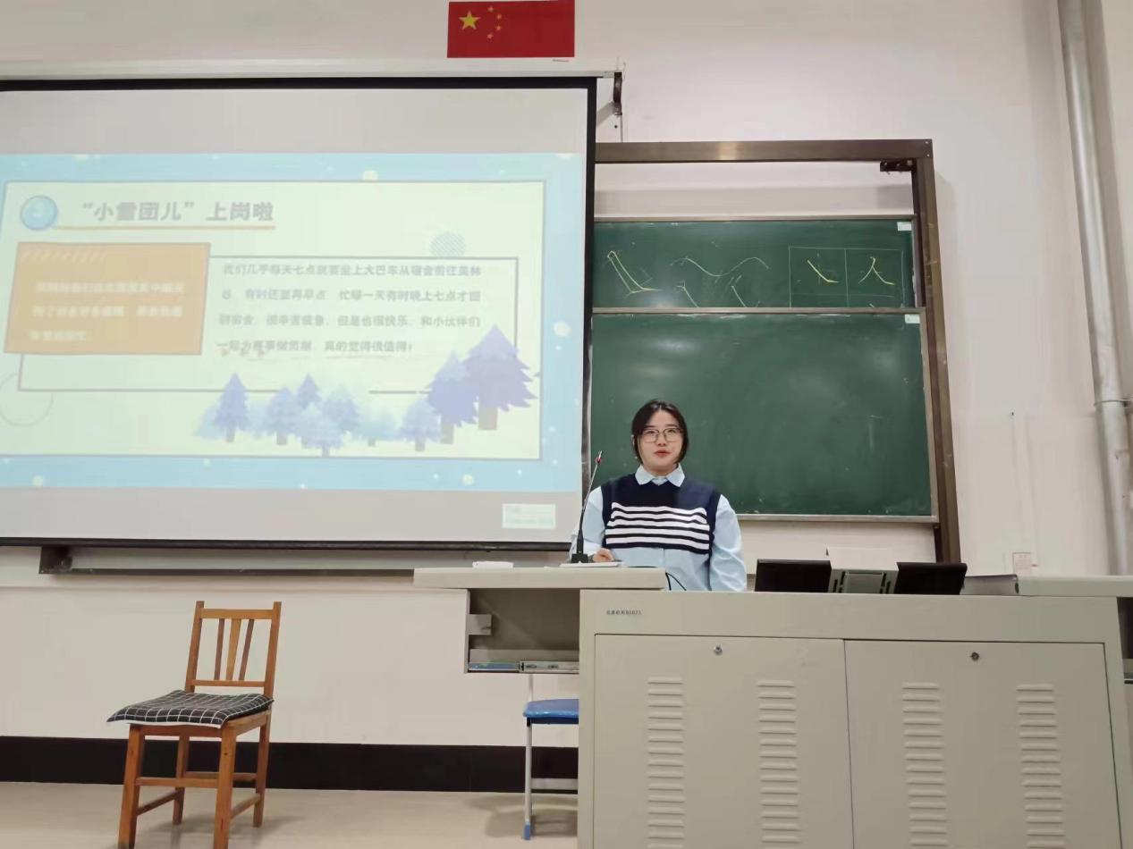 本次活动由杜晓雪、李佳慧、孙鑫鑫三位同学向师生们分享在十四冬中担任志愿者的感受与志愿服务中发生的趣事。