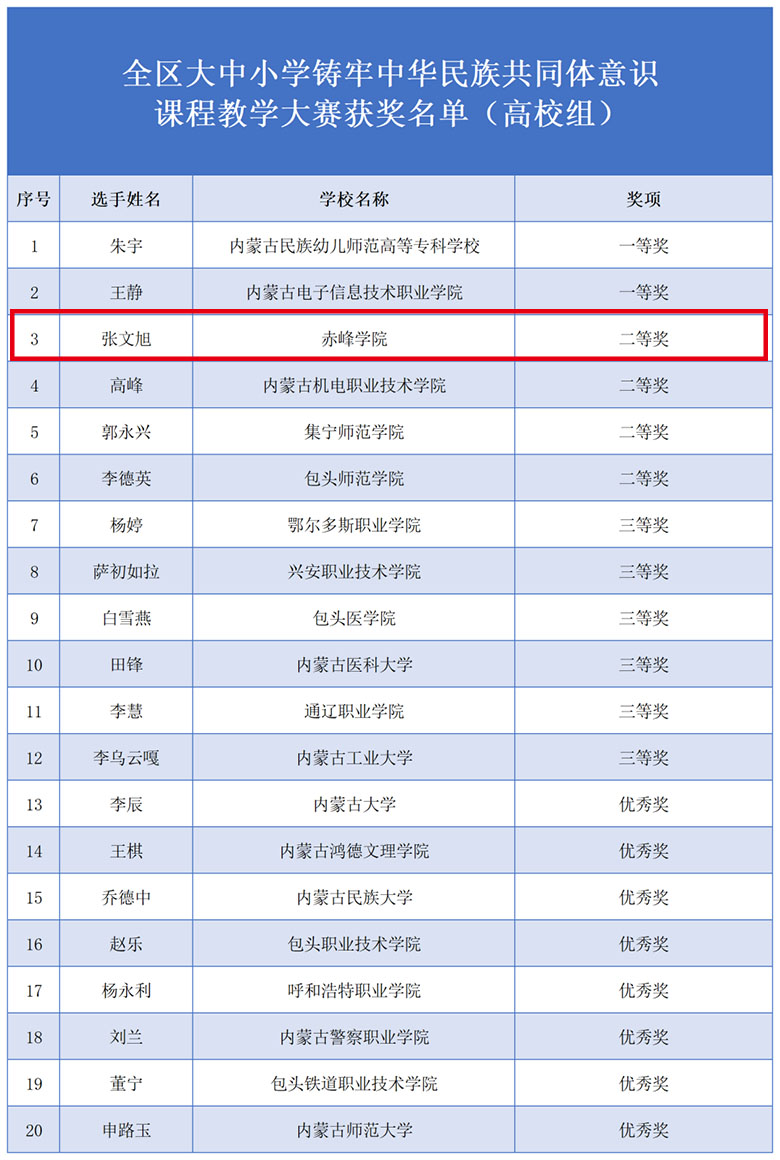我院教师张文旭在内蒙古自治区大中小学铸牢中华民族共同体意识课程教学大赛中荣获佳绩