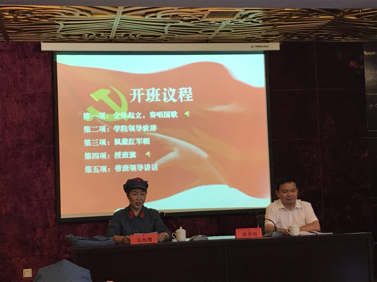 7月10日下午,唱国歌,颁班旗,授军帽,在庄严的开班仪式中,培训活动拉开了序幕。井冈山青年干部学院院长唐苏明主持开班仪式。随后,吴海鹰书记在讲话中重申了习总书记讲话精神,向学员们提出了希望和要求。