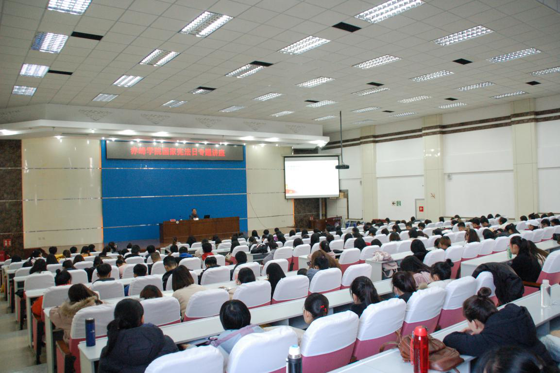六、宪法日专题报告会——                            弘扬宪法精神                            全面依法治国                                                      12月              5              日在崇学楼学术报告厅举办了                            弘扬宪法精神                            全面依法治国              》的专题报告              会。              赤峰学院科技              的部分领导              、马克思主义学院              的部分老师、法学社的全体成员及学院学生              200余人参加了此次报告会。              本次讲座              由马克思主义学院院长张清华教授主讲                            他从依法治国的必要性、党的领导与依法治国、树立宪法尊严 、宪法修正案等四个方面全面              贯彻                            党的十八大以来,以习近平同志为核心的党中央坚持依宪治国                            加强宪法宣传教育的重要指示              ,就              弘扬宪法精神                            全面依法治国              作出                            深刻阐述