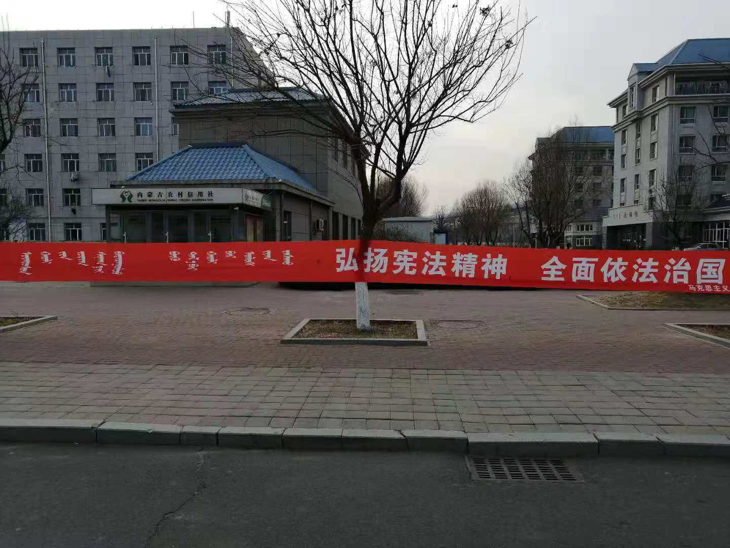 七、              悬挂标语,营造氛围                                        在“宪法宣传周”期间,采取多种载体形式宣传《宪法》,并在校园内悬挂宣传横幅展板的方式营造了尊法学法守法用法的良好氛围。