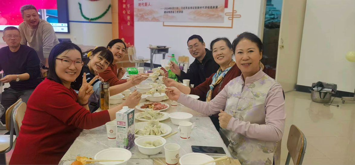 随后,包饺子环节将活动氛围推向高潮,为本次联欢画上圆满句号。大家围坐一起,和面、擀皮、包馅,一双双巧手将团圆的期盼和新年的祝福包进饺子里。大家边包边聊,从工作日常谈到生活趣事,教室中飘着饺子馅的香气,也满溢着“家”的温馨。