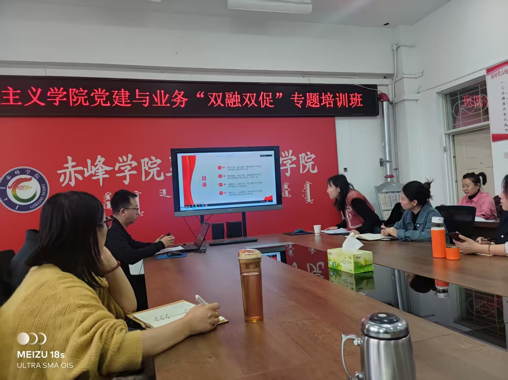 为促进党建与业务融合融通,以党建促业务,以业务强党建,马克思主义学院决定开展为期一周的党建与业务“双融双促”专题培训班。作为培训班的首讲,马克思主义学院特邀自治区民委理论研究处处长张玲玲,2025年11月7日,在学院会议室作了题为“理论铸魂 实践赋能——中华民族共同体理论研究内蒙古实践”的专题培训讲座。讲座由马克思主义学院党总支书记张明主持,学院全体党员参与学习。
