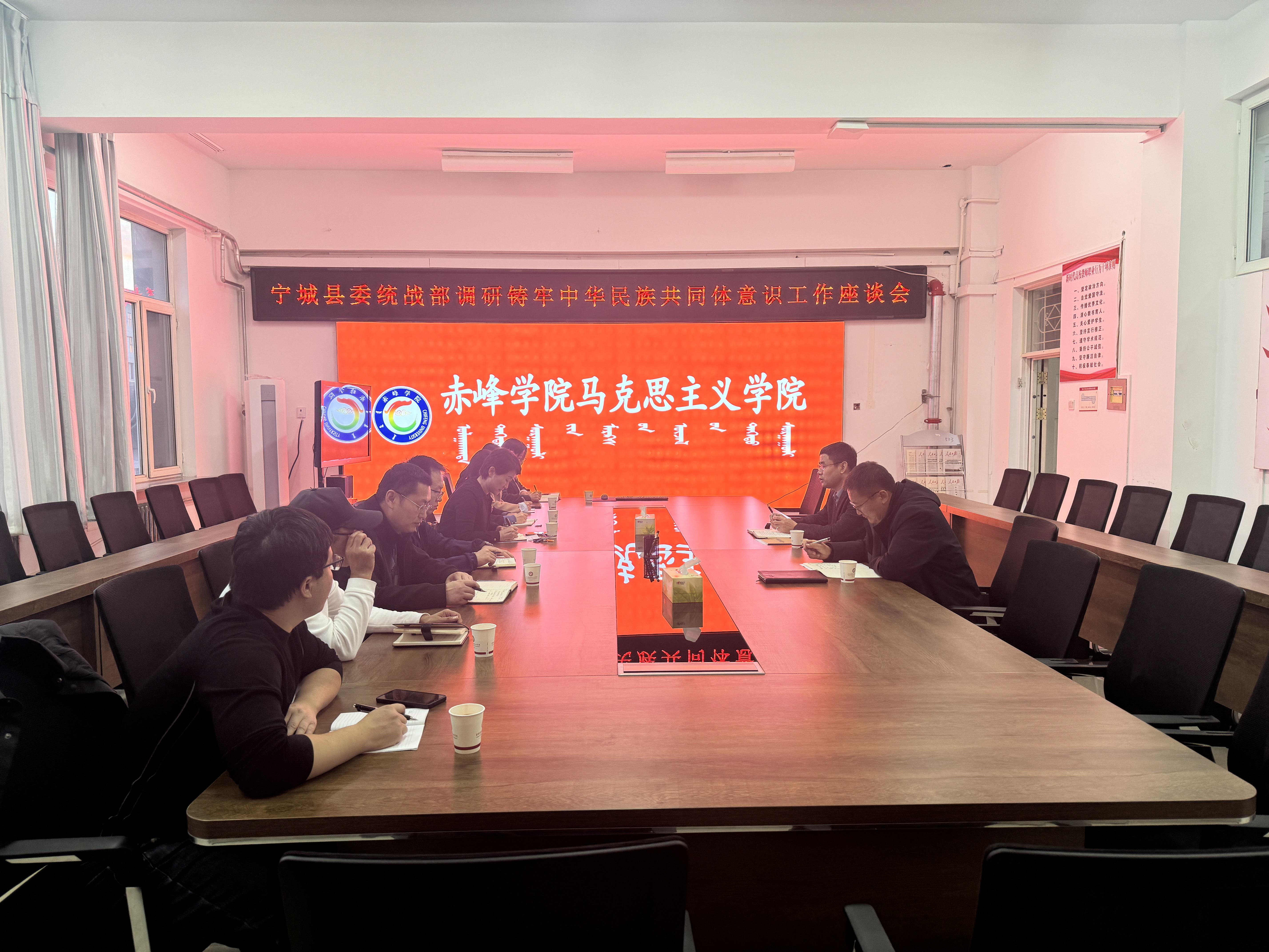 2025年10月31日,宁城县委常委、统战部长常建闯,宁城县民委主任朱永军赴赤峰学院马克思主义学院,围绕“铸牢中华民族共同体意识”开展专题调研座谈会。赤峰学院马克思主义学院领导班子、行政人员、铸牢中华民族共同体意识教研室教师参与座谈。