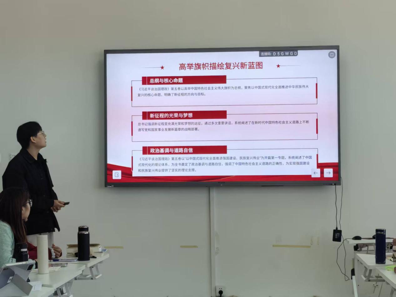 本次活动围绕《习近平谈治国理政》第五卷展开,同学们结合自身专业,分享对著作核心章节的思考和感悟。活动伊始,张明书记致辞并指出,作为马克思主义学院的学子,研读经典是我们的“必修课”,更是我们的“看家本领”。希望大家既能沉下心“读原著、学原文、悟原理”,在字里行间把握真理的逻辑;也能抬起头“联实际、察现实、谋实事”,把经典著作中的智慧,与国家发展的脉搏、社会进步的需求、个人成长的路径结合起来。