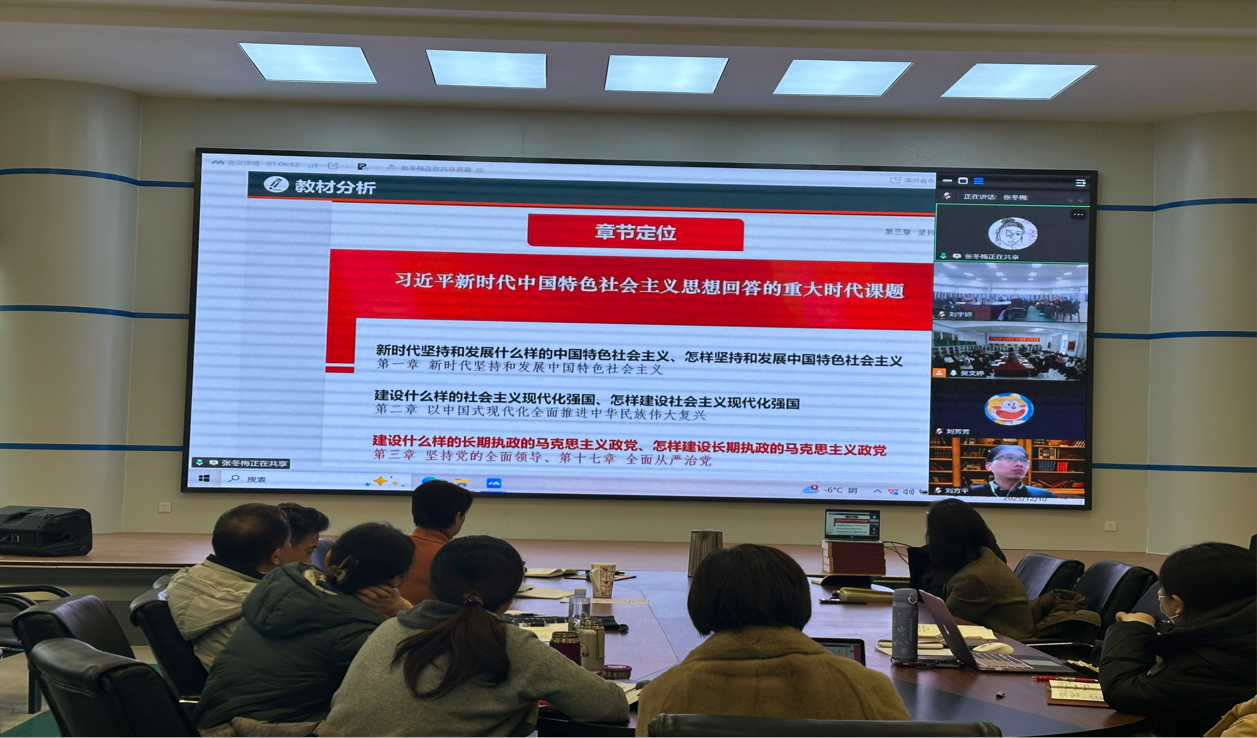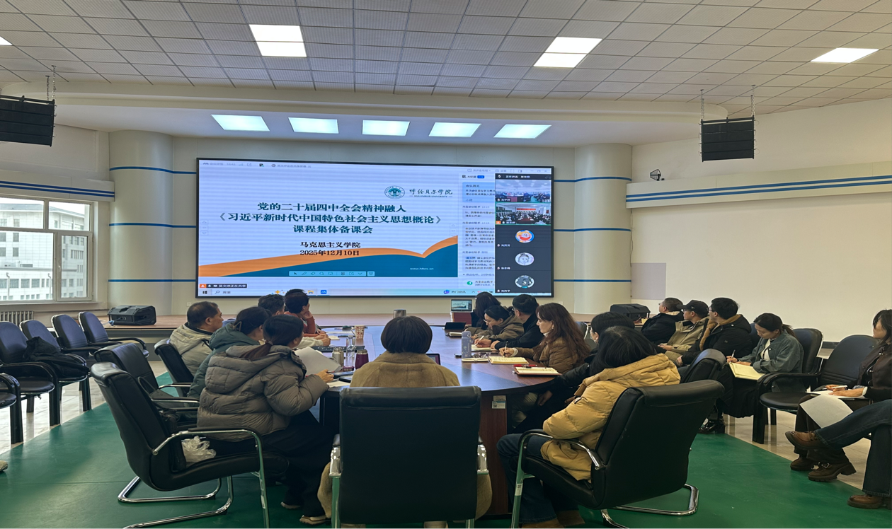 2025年12月10日下午,赤峰学院马克思主义学院与呼伦贝尔学院马克思主义学院联合举办的党的二十届四中全会精神融入《习近平新时代中国特色社会主义思想概论》课程集体备课会在我院智慧思政教室顺利举行。会议特邀首都师范大学马克思主义学院刘方平教授进行线上指导,两校马克思主义学院领导、思政课教师及相关校领导、督导专家共同参会,围绕党的二十届四中全会精神如何深度、生动融入思政课堂展开深入交流与教学研讨。