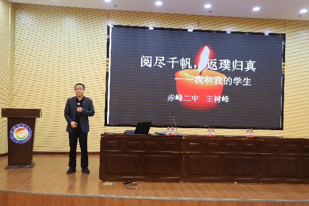 活动由教师教育学院赵国民副院长主持。来自赤峰二中的王树峰老师以“阅尽千帆,返璞归真”为题,将他三十多年高中班主任生涯中遇到的师生之间点点滴滴充满爱的故事娓娓道来,以一件件感人事例展示了班主任对学生人生观、世界观、价值观的深刻影响。来自赤峰三中的祁长青老师以“主题活动的魅力”为题,从主题活动的目的、意义及如何开展主题活动等方面系统讲述了初中班级主题活动的组织,并以自身的班主任工作经历分享了初一到初三不同阶段主题活动的思路和方法。