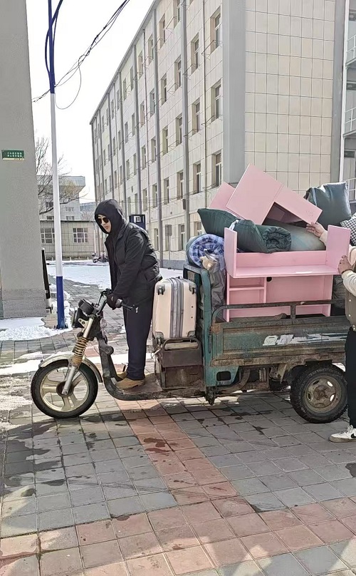搬运过程中,同学们分工明确、协作有序,利用学校调配的车辆和教师私家车将行李转运至翻修一新的原宿舍楼,并逐一送至对应宿舍。不仅高效完成体力劳动,还细心整理行李,确保流程安全顺畅。